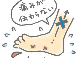 表在感覚においては、指や足底の皮膚が硬かったり、乾燥していると感覚受容器の問題で鈍麻していることもあります。