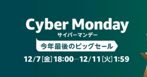 おすすめ商品・サービス2018年12月6日【2018年末限定!大幅値下げセール】Amazonサイバーマンデーで超お得に買い物できるよ!年末、Amazonサイバーマンデーの時期がやってきました! 年末はどこもセールばかりですよね。 皆んな一切にお買い物するので、この雑記・考察僕のことおすすめ商品おすすめサービス
